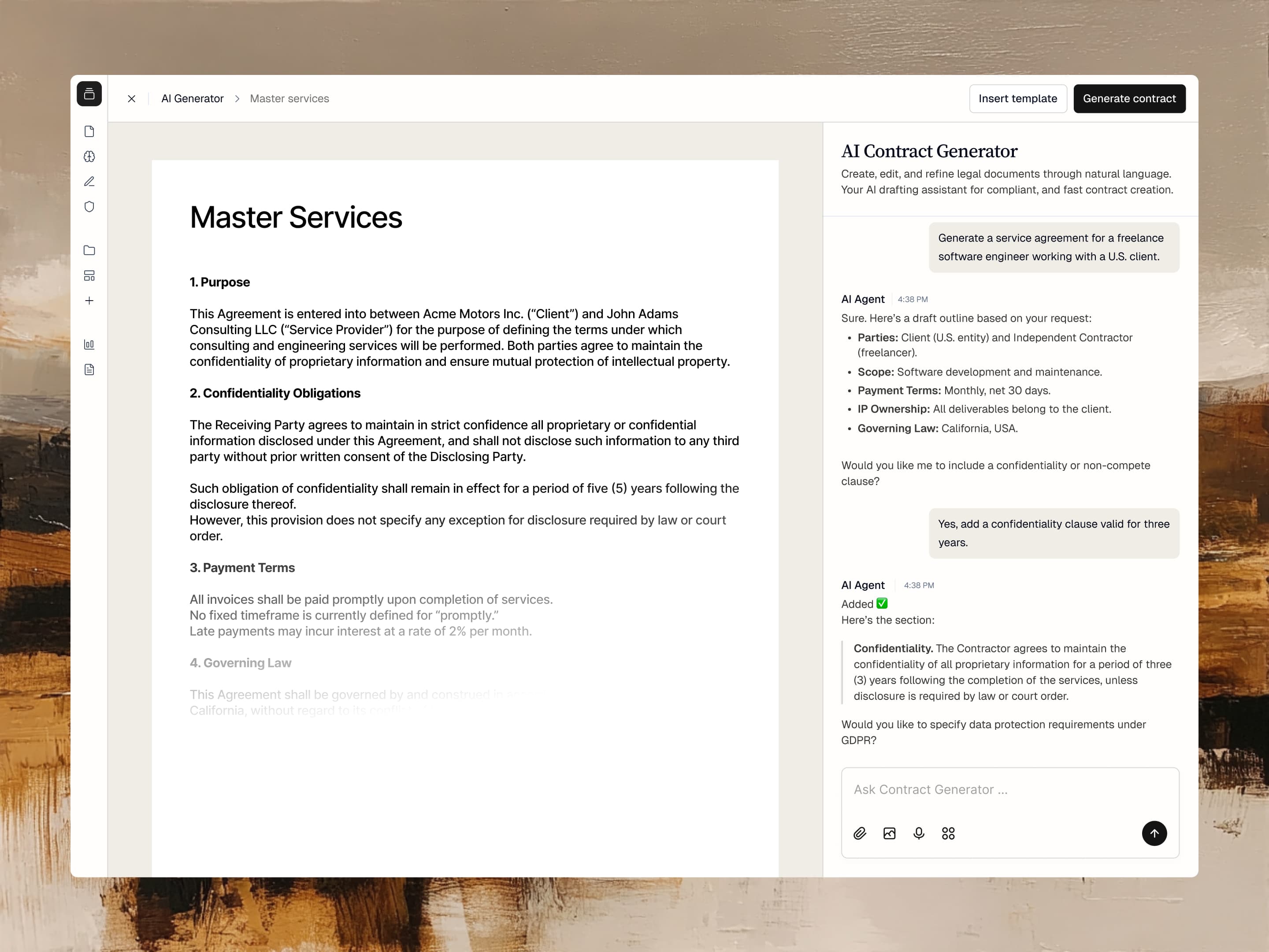 Streamline your workflow with intelligent features designed to make every contract more accurate, compliant, and effortless.